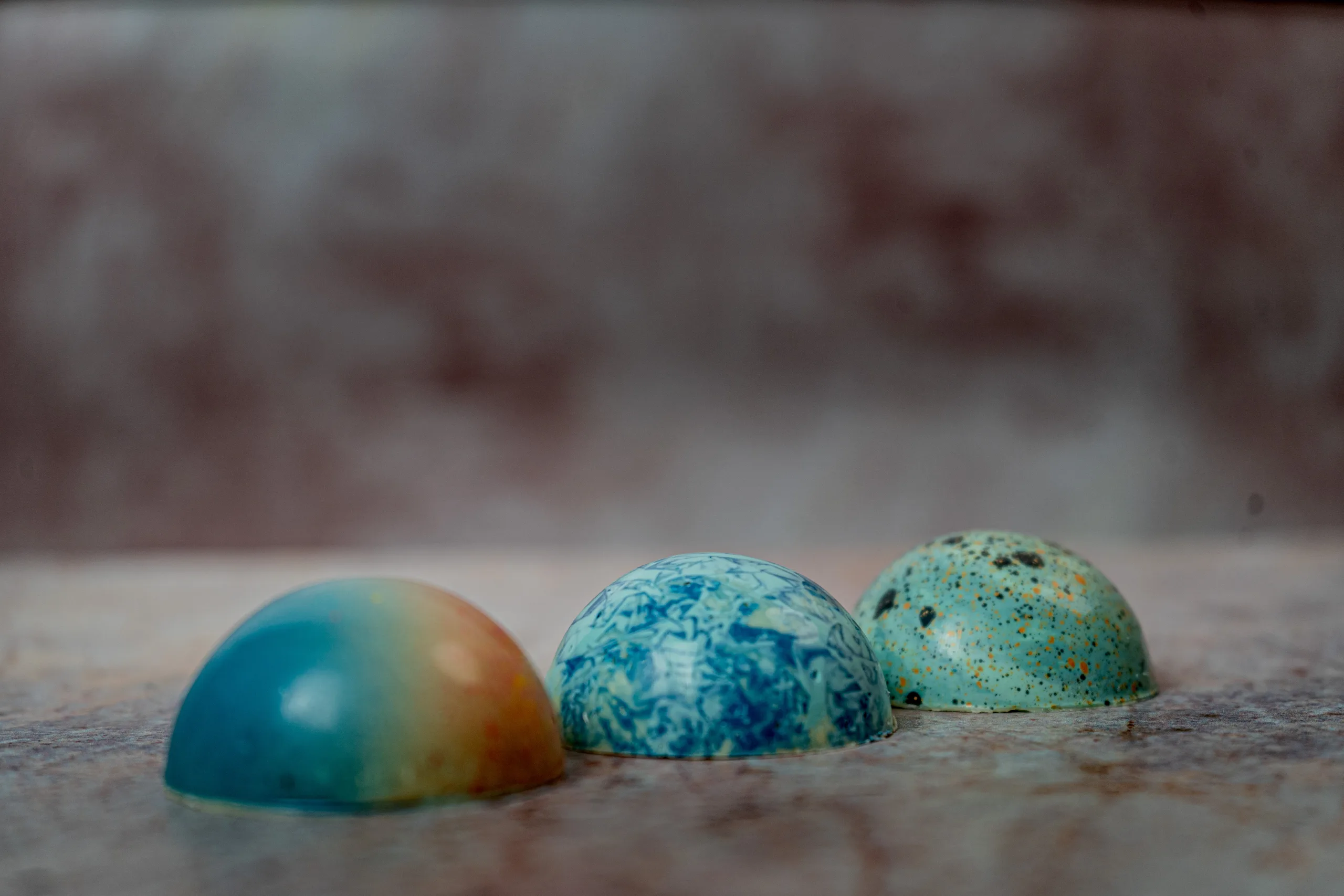 NOIR Domos MAR concentra la esencia de la colección en tres piezas de mayor tamaño. Cada domo permite una experiencia más prolongada, donde el relleno se desarrolla en boca con mayor profundidad.