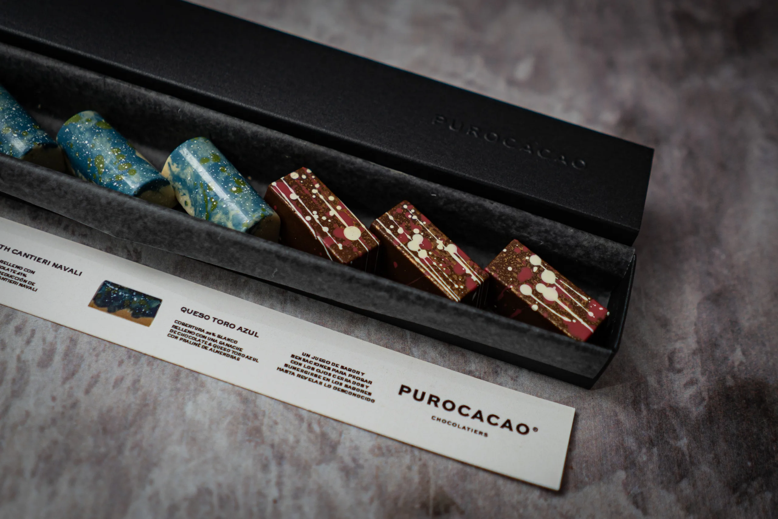 • Queso Azul: intensidad y carácter, un contraste elegante entre la fuerza del queso y la suavidad del cacao.